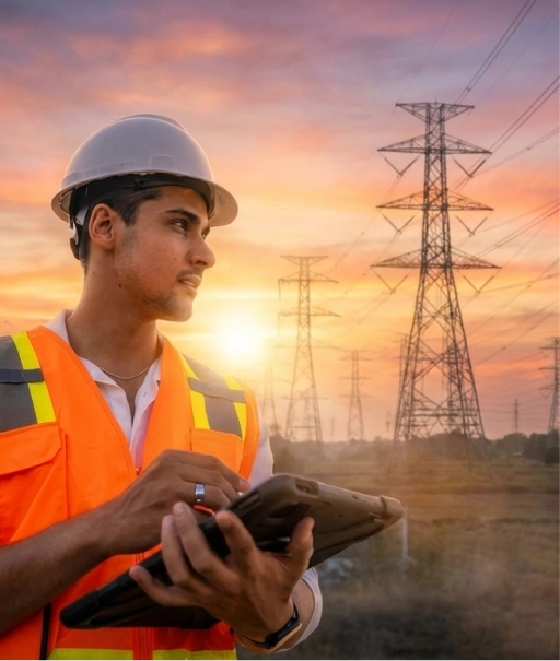 Full EPC capability across 33 kV to 400 kV: transmission lines, EHV substations, and grid connectivity — delivered to PGCIL, TRANSCO, and state utility standards.